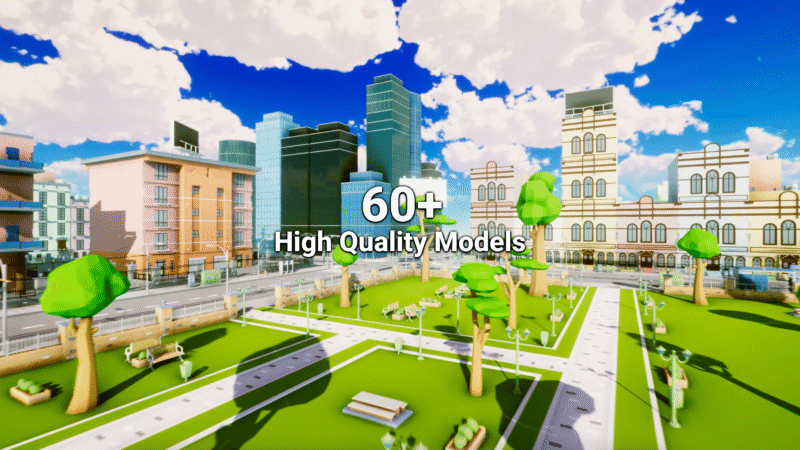 - 60+ High-Quality Models: Buildings, props, vehicles, and people — each model optimized with colliders for efficient use.